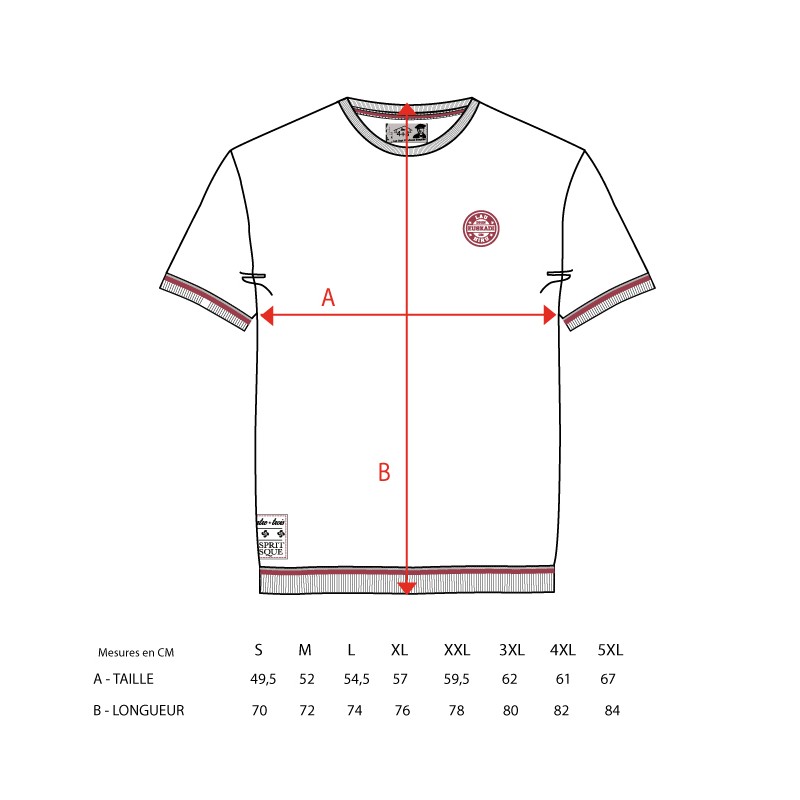 - Liseré en col et bas de tee shirt blanc et rouge.