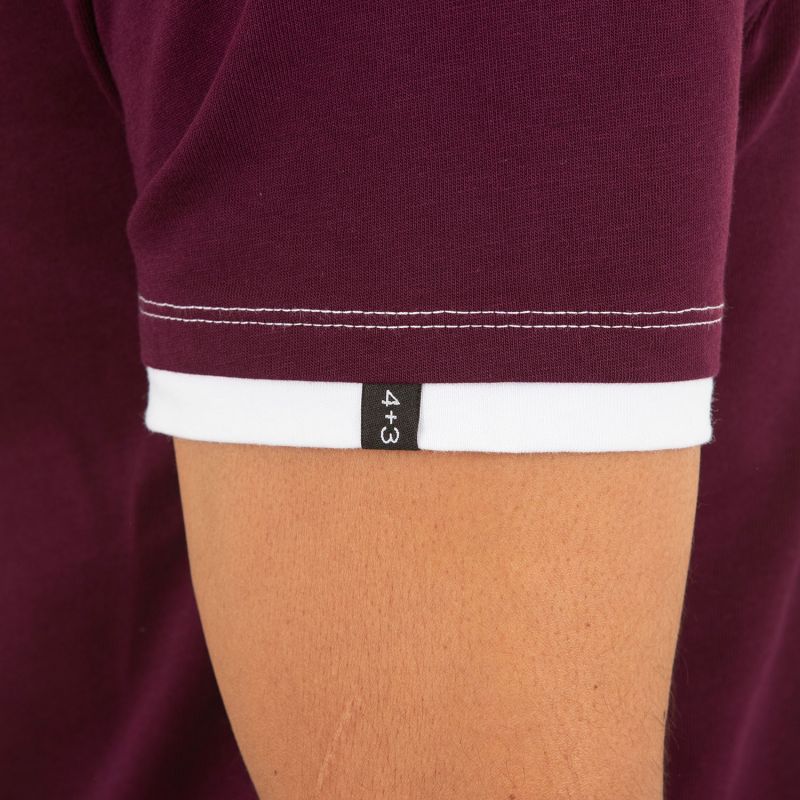 - Tee shirt 100% coton, bords côte en manches et bas de tee shirt, broderies en épaules façon anciens maillots de rugby, couleur aubergine.